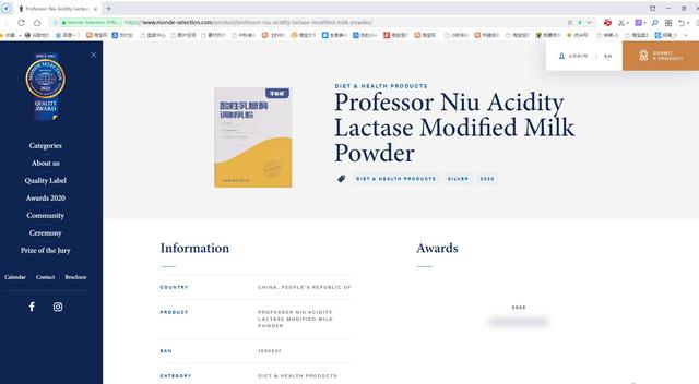 牛教授乳糖酶荣获2020年"世界食品品质评鉴大奖"